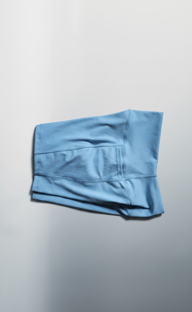 El FLOW SHORT en Sky Blue está diseñado para acompañar el movimiento con naturalidad. Su ajuste de tiro alto y compresión ligera generan una sensación de estabilidad sin limitar la libertad.